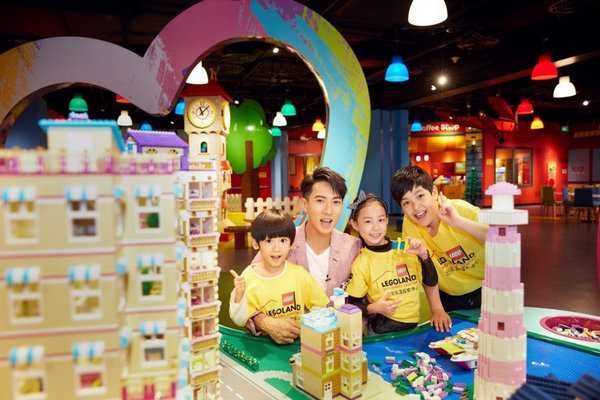 吴尊和孩子们在乐高好朋友区域拼砌建筑