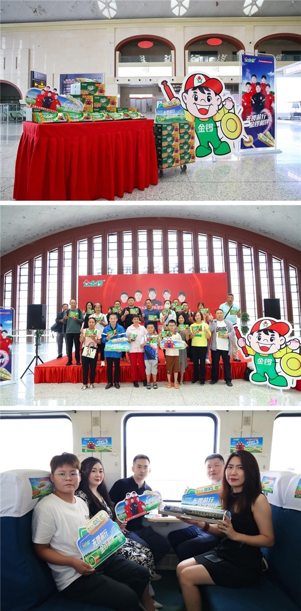 恰逢“暑运模式”,国民旅游出行需求旺盛。在普铁强大的传播力和超级流量加持下,“无畏前行 金锣相伴”冠名列车高频穿行于东三省、京津冀、长三角、珠三角等地区,让来自全国各地的亿万乘客沉浸式感受金锣品牌魅力,打造金锣成为中国肉制品产业闪耀的品牌名片。启动仪式前后,金锣集团与辐轮传媒相关工作人员组织了精彩互动活动,为乘客送上金锣定制T恤衫及健康美味的火腿肠,加深了乘客对金锣的品牌印象。