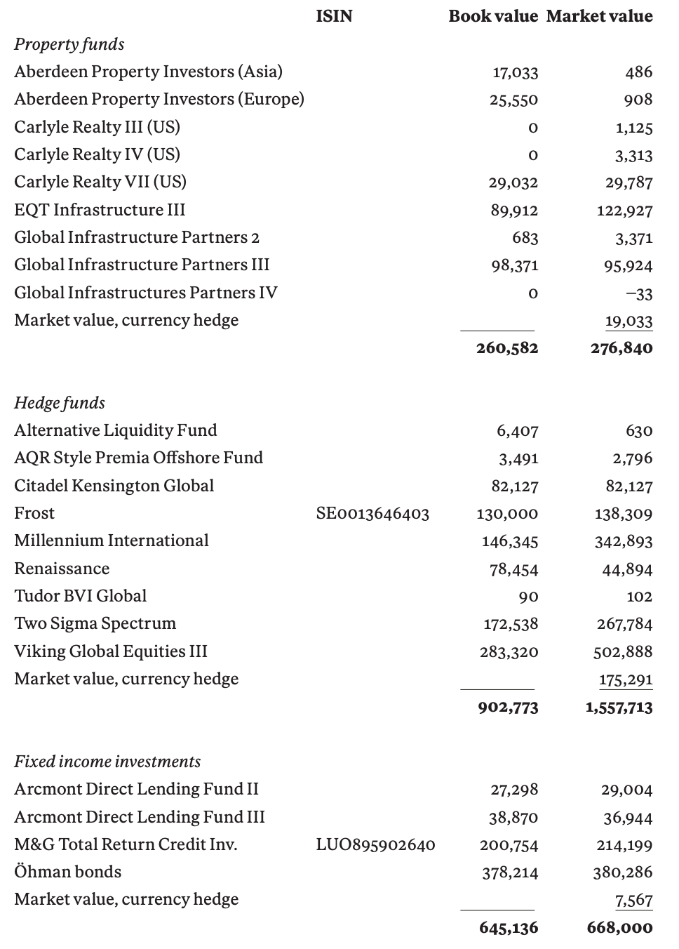 在股票与私募股权基金中,诺贝尔基金会投资了贝莱德MSCI美国股票指数ESG筛选B类基金,瑞典商业银行基金公司的欧洲、瑞典、美国指数基金等产品,以及红杉资本的中国成长基金、中国风险投资基金、美国成长基金、美国风险投资基金等。