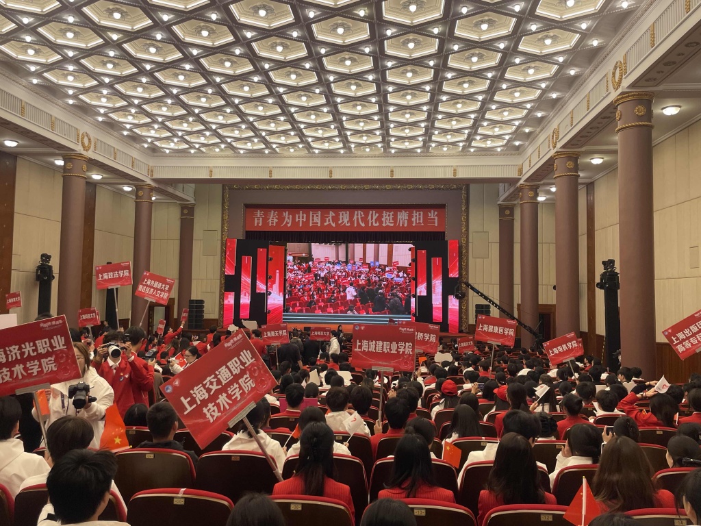 10月29日,第八届中国国际进口博览会志愿者上岗宣誓仪式暨志愿者临时党、团组织成立仪式在上海举行,3865名进博“小叶子”宣誓上岗。