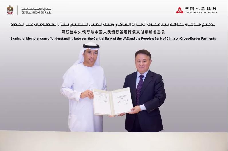 同日,潘功胜与哈立德签署《中国人民银行与阿联酋中央银行关于开展中国-阿联酋跨境支付互联互通的谅解备忘录》。双方将构建中阿跨境支付合作监管框架,实现两国快速支付系统互联,支持两国企业和个人线上快速办理跨境汇款,提升中阿跨境支付效率和服务水平,进一步便利双边经贸活动和人员往来。