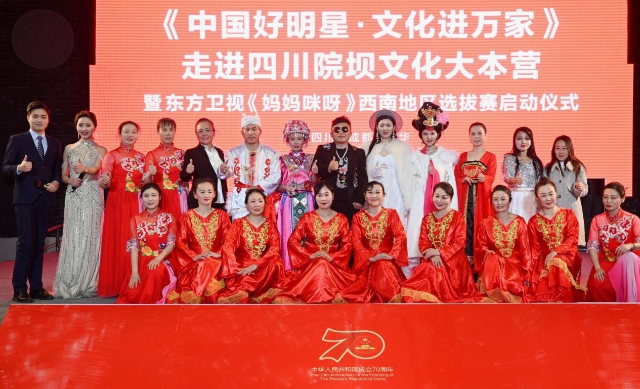 2019年12月28日15:00时, 在中国传统文化促进会、中国乡土艺术协会指导下;由《中国好明星·文化进万家》全国组委会联合东方卫视《妈妈咪呀》西南地区选拔赛承办方泸州黄容文化传播有限公司、四川院坝文化大本营及中视腾博国际文化传播有限公司,在各级领导关怀下,在众多文艺工作者、企业、院团、协会等机构的大力支持下;在中国成都·四川院坝文化大本营隆重举行《中国好明星·文化进万家》走进四川院坝大本营暨东方卫视《妈妈咪呀》第七季西南地区选拔赛的启动仪式圆满成功,扬帆起航!本次活动由著名策划人,媒体人,大型活动创意导演杨代忠先生担任总策划总导演;湖南电视台《对话企业家》栏目郭明哲先生担任执行导演;四川电视台《筑梦四川》栏目组优秀主持人张玉书、主流团队龚亚清、吴豪、肖皓联袂主持,为现场观众和广大在线网友奉献了一场精彩的视觉、情感和文化的盛宴!