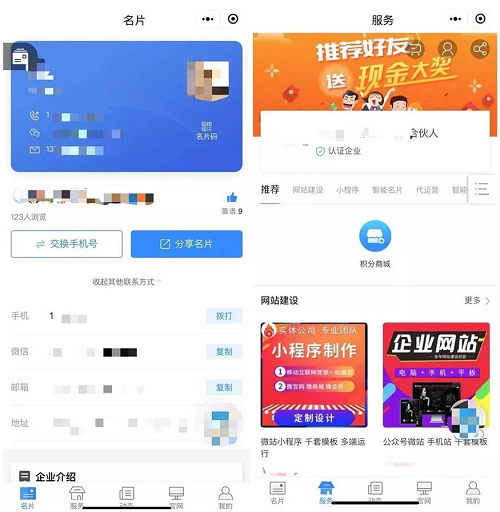 名片小程序,不仅仅是联系方式等基础信息的展示,而是集成了电商、公司主页功能,也就是说,通过智能名片,企业建立一个“主页”,在这个主页里,客户可查看该公司提供的更多服务,还可以直接进入商城进行购买。