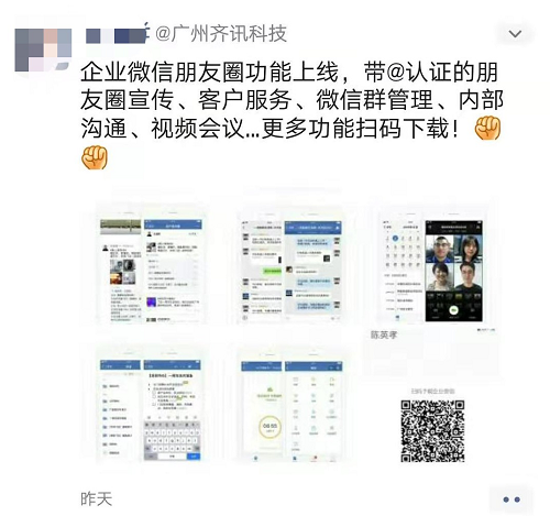 “客户朋友圈”更像是一个为企业定制的“朋友圈广告”能力,当企业员工发一条朋友圈,就相当于在精准人群里发一条有官方认证的朋友圈“广告”。