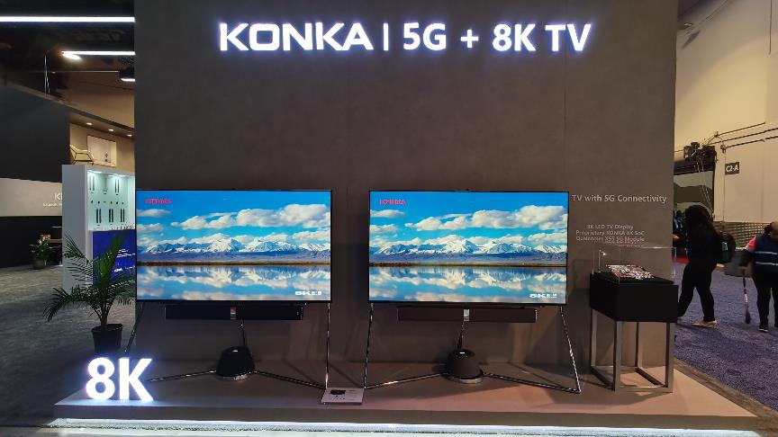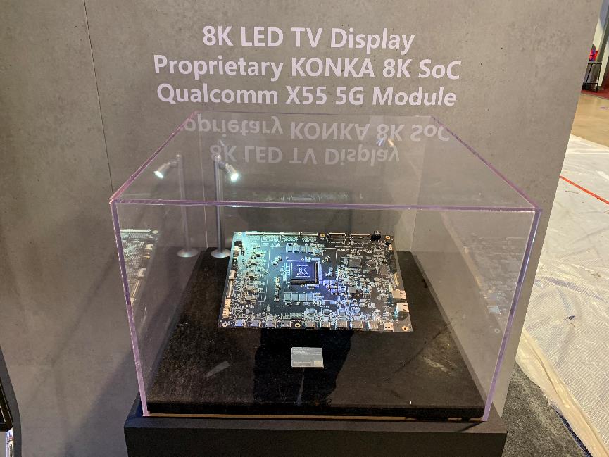 康佳还展示了5G+8K技术在电视机上的应用。康佳Smart Wall,康佳APHAEA-A3电视都搭载康佳自主研发的8K图像处理芯片,能够实现从信源输入、信号处理到显示,全程8K无损处理,支持HDMI2.1和DP1.4双路单线传输8K信号的芯片,在国际处于领先地位。