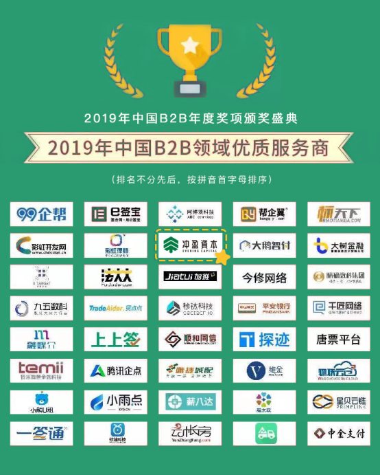 1月8日至9日,由B2B内参、产业互联网头条、产业互联网雄鹰会主办的2019年第三届中国B2B峰会在北京拉开帷幕。作为长期深耕B2B领域的财务顾问机构,冲盈资本在此次大会中融获“2019年中国B2B领域优质服务商奖”。冲盈资本也是此次大会唯一一家获奖的财务顾问机构。