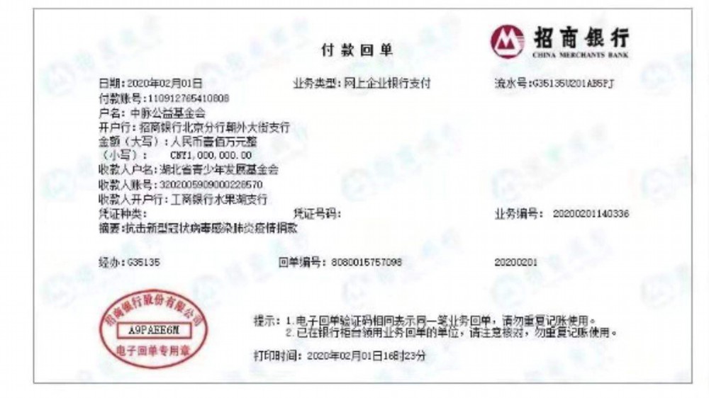 为了支援武汉,抗击新型冠状病毒感染的肺炎,响应党中央和国务院的号召部署,中脉科技发展有限公司美丽事业部通过中脉公益基金会日前向湖北青少年发展基金会捐赠100万元人民币,希望为湖北武汉人民奉献绵薄之力,并呼吁大家积极参与到这场与新型冠状病毒感染的肺炎疫情的战役中来。