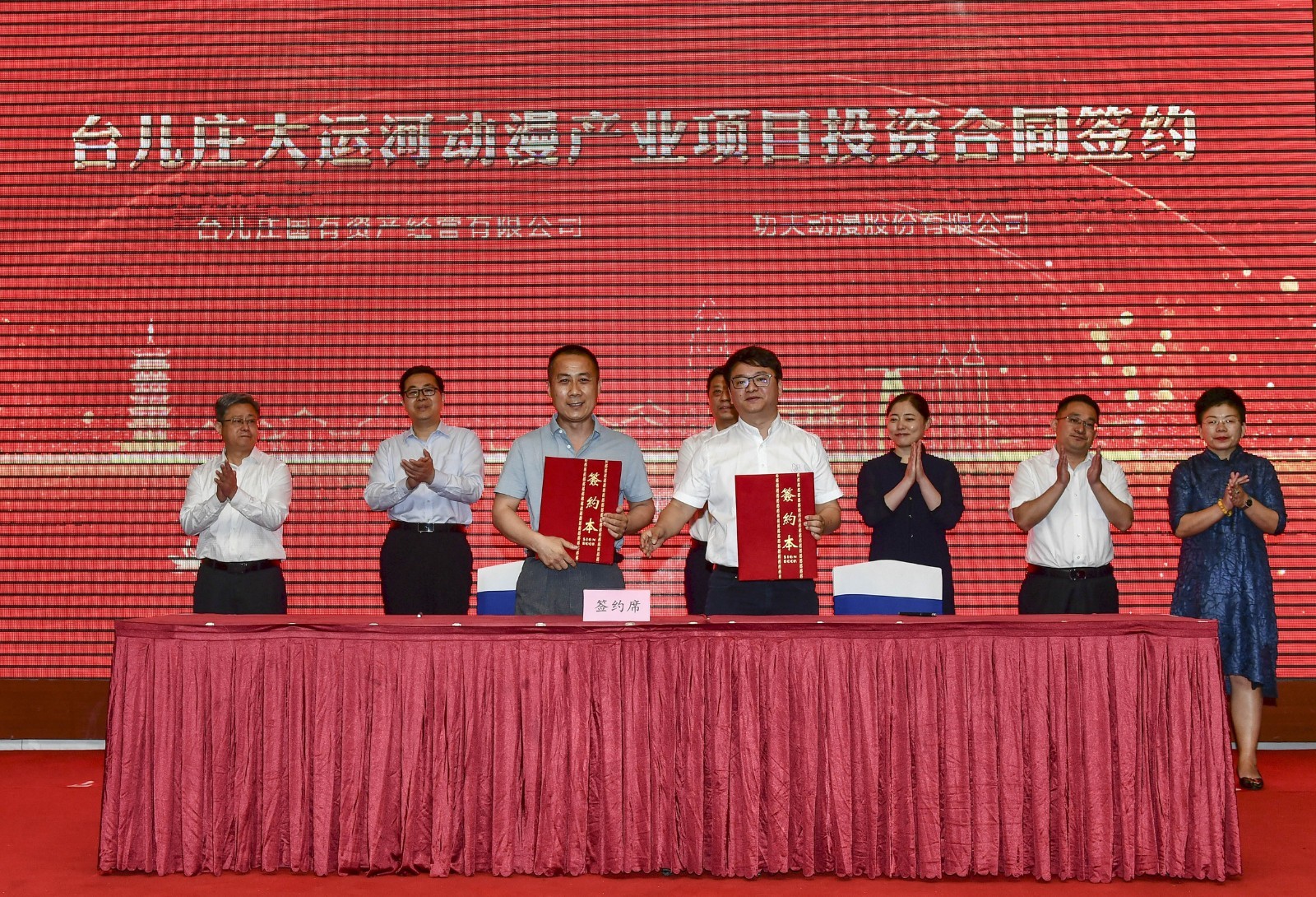 随后,现场举行了台儿庄大运河动漫产业项目投资合同签约仪式与大运河超级IP动漫投资合作协议签约仪式。通过城市超级IP的集聚、引领和辐射作用,接下来台儿庄将加快招引、培育一批以创新为重心,具有强大市场竞争力的新型文化企业,以台儿庄大运河文化为重心,通过打造产业链条更长、带动能力更强的IP全产业链,快速发展壮大台儿庄的文旅产业,推动台儿庄向现代文旅城市发展,并推动大运河文化实现创造性转化、创新性发展,有效提升台儿庄文化软实力、影响力、竞争力。