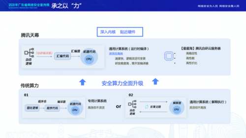 在2020广东省网安周的网络安全云峰会上,腾讯安全平台部产品专家许艾斯介绍道,针对新基建时代数据大爆发所需的算力需求,腾讯安全平台部协同腾讯云星星海团队,从硬件、软件层面研发优化,持续在安全算力上深耕细作,致力于为新基建场景下业务的稳定发展提供坚实支撑。