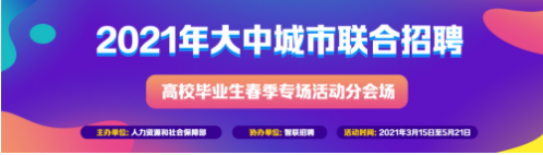 据了解,本次高校毕业生春季专场活动由国家人力资源和社会保障部发起,智联招聘等人力资源服务机构和行业协会参与,陆续密集推出网络招聘会、现场招聘会、跨区域巡回招聘会,为高校毕业提供就业创业政策宣传、职业指导等配套就业服务活动。