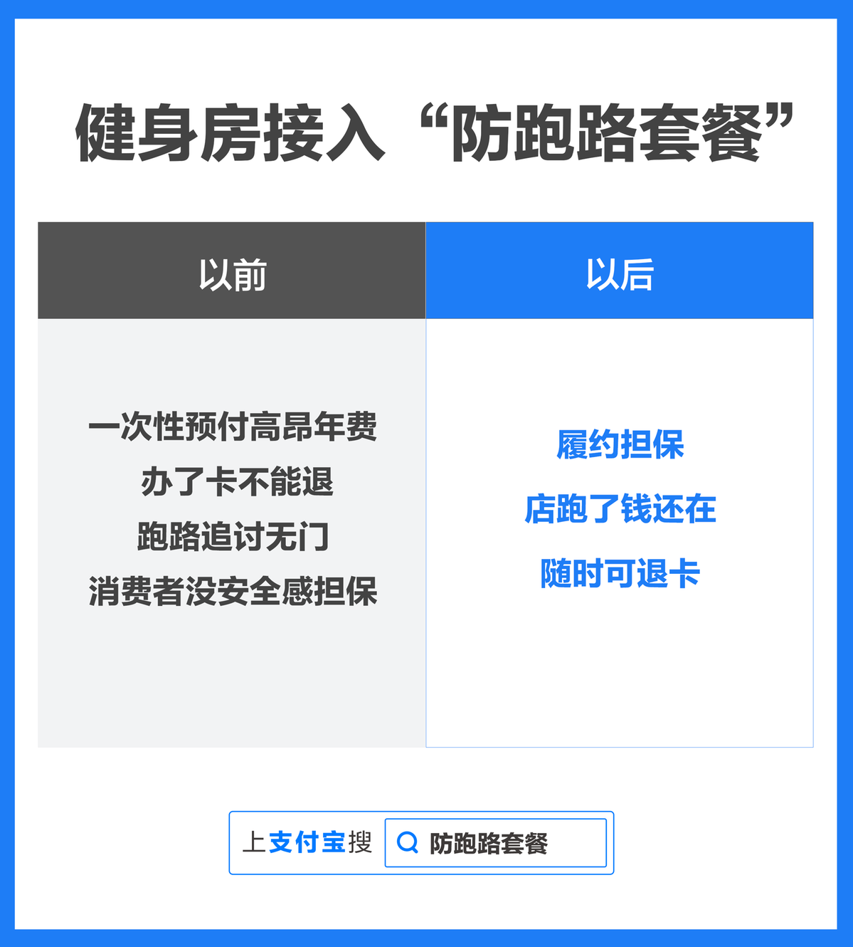 不久前,北京体育局推出了办卡“7天冷静期”后,受到网民们一致好评。而近日,2000多家健身机构与支付宝开放平台联合推出了“防跑路”套餐,利用技术手段保障消费者权益,涵盖了上海、北京、成都、杭州、深圳等主要城市的健身机构。