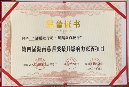 5月19日,第四届“湖南慈善奖”评选表彰会在长沙举行。副省长朱忠明出席。为鼓励先进,树立典型,激发全民向上向善正能量,在经社会各界推荐、网络投票、评审委员会审议、征求相关部门意见和社会公示的基础上,湖南省人力资源和社会保障厅、湖南省民政厅、湖南省慈善总会联合决定,授予“温暖微行动舞蹈益百校行”项目等20个慈善项目为第四届“湖南慈善奖”最具影响力慈善项目。