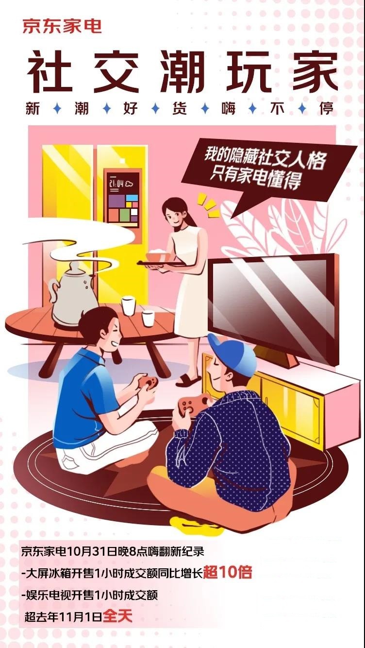 根据京东家电10月31日晚8点开门红统计数据显示,娱乐电视成玩家首选,开售1小时成交额超去年11月1日全天;大屏冰箱开售1小时成交额同比增长超10倍。
