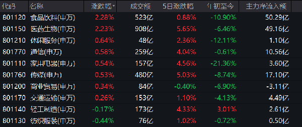 临近年末,多重积极信号释放下的大消费板块再度活跃。11月16日, 医药生物、食品饮料、家用电器等板块继续强势领涨,Wind数据显示,截至当日收盘,申万一级行业食品饮料、生物医药、休闲服务、家用电器板块分别涨2.28%、2.23%、0.64%、0.54%,两市成交额连续18个交易日突破万亿元。多家机构表示,未来市场投资主线或将转向偏稳健的板块,消费行情有望回归。