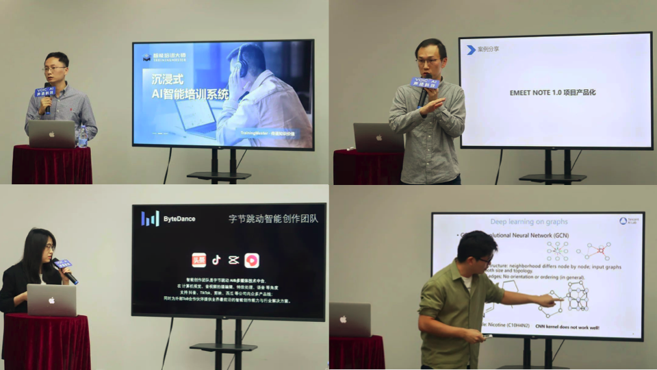 字节跳动算法工程师何静雯女士,腾讯AI Lab研究员卞亚涛先生与壹秘科技副总裁吴天瑞先生在现场分别与嘉宾分享了“可调节的图像复原”、“无需额外标签:通过自监督学习和自蒸馏增强图神经网络”、“会议场景中的智能语音技术应用和产品化”主题演讲。现场气氛热烈,到场嘉宾畅所欲言。