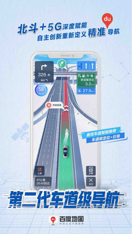 近日,百度地图全新发布“第二代车道级导航”功能,在实现全程车道级导航效果的基础上,进一步升级最优车道推荐、分/全屏动态导航框架和危险场景护航提示等优势功能。此次发布,百度地图联合中国移动,通过“北斗+5G”赋能,实现了亚米级高精度定位,并融合自身AI能力,打造极致精准的高精度车道级导航服务,为用户带来更直观、易懂、人性化的导航体验。