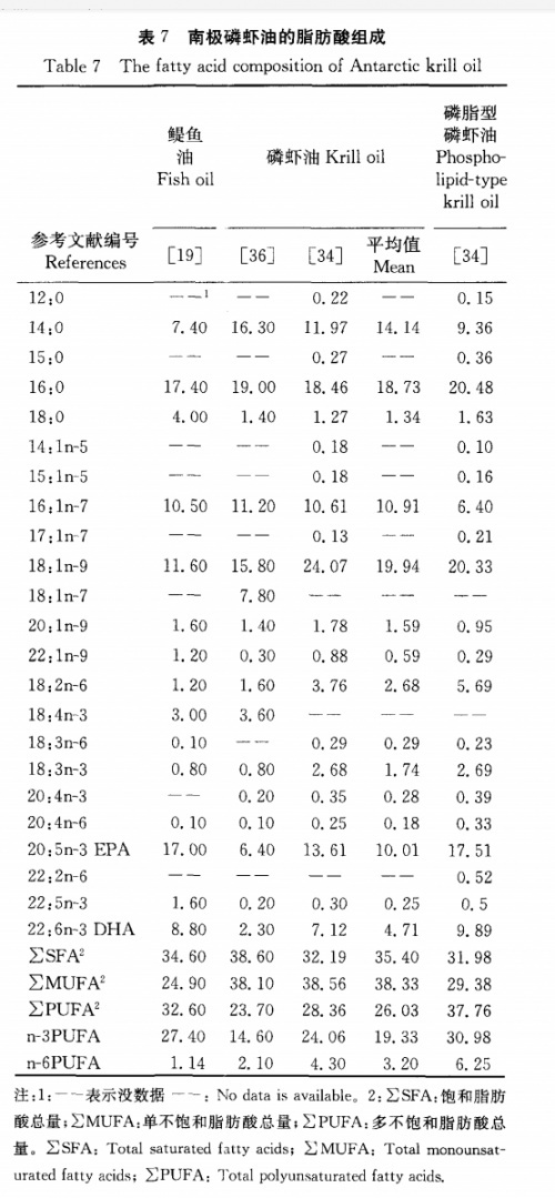 据《南极磷虾的主要营养组成及其在水产饲料中的应用》等多种文献资料显示,磷虾油和鱼油中的顶配深海鱼油,都含有高比例的 EPA 和DHA,但鱼油中的脂肪酸大部分都是以甘油三酯形式存在,而磷虾油中30%–65%的脂肪酸是以磷脂的形式存在。磷虾油中磷脂含量可达到48.37 %~51.0%。此外,磷虾油具有一种脂溶性色素虾青素(0.04%,w/w),它同时也是强大的抗氧化剂,可以避免磷虾油被氧化。