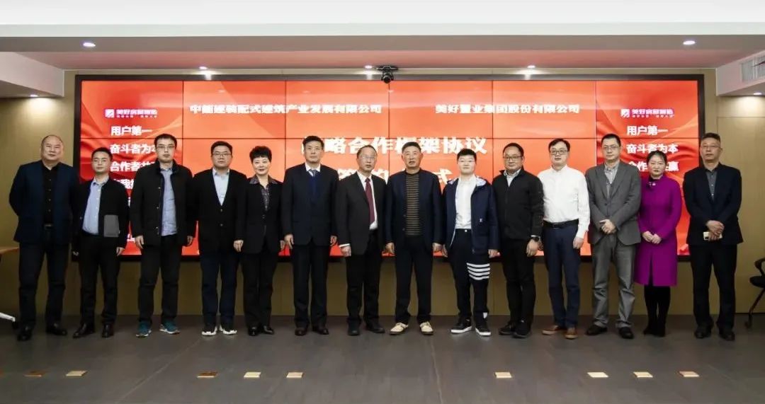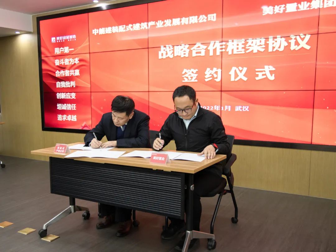 1月22日下午,美好置业集团与中能建装配式建筑产业发展有限公司(以下简称“中能建装配式产业公司”)于美好置业集团总部所在地武汉美好广场达成战略合作并签署战略合作框架协议。双方将充分发挥各自优势,通过灵活多样的方式,开展全方位、宽领域、多层次的战略合作,实现双方装配式建筑业务共同发展,运用产业化思维为装配式建筑产业发展做贡献。