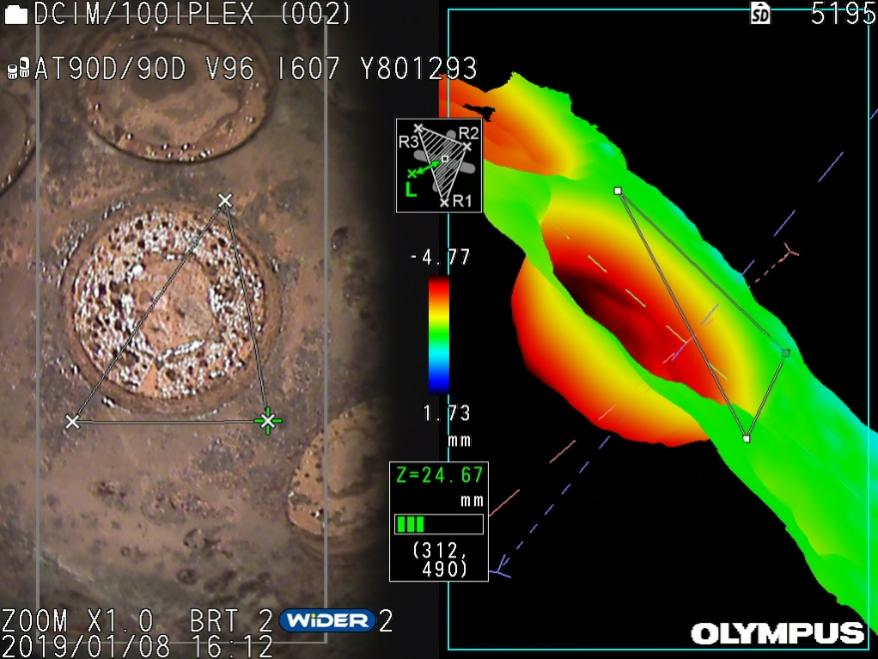 奥林巴斯NX采用激光3D矩阵扫描技术,是目前主流工业内窥镜领域唯 一一款可以在日光环境下进行高精度3D测量的视频内窥镜。最重要的是,使用前无需过多专业培训,拍照时也无需刻意保持静止状态,非常适合于民航维修领域广泛的检测人员使用。
