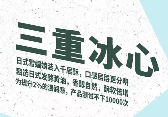 冰心夹层,日式雪媚娘装入千层酥,口感层层更分明,为提升2%的温润感,产品测试不下10000次。慢工出臻品,15道工序,酥软好品质比普通月饼多3倍工时。