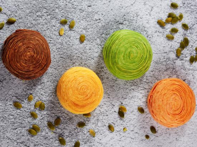 千层酥皮,肉眼可见180层,每层细致到0.47mm,每一圈层延展开来,长度惊人,堪比4层楼高。