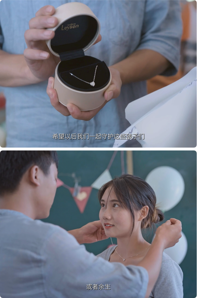 当贵州遵义桐梓县支教4年的杨小龙老师,终于有机会向同为支教老师的许双告白,当杨小龙为许双带上寓意真心守护的小真心项链时,这份始于支教、忠于真心的爱情让人动容:“希望以后我们一起守护这些孩子,往后余生我可以一直照顾你”。