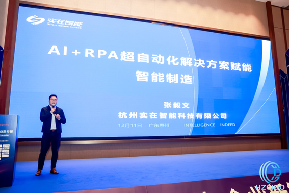 实现企业数据新价值,助力企业发展带来新能量,实在智能大湾区事业线总裁张毅文带来“AI+RPA超自动化解决方案赋能智能制造”主题分享。