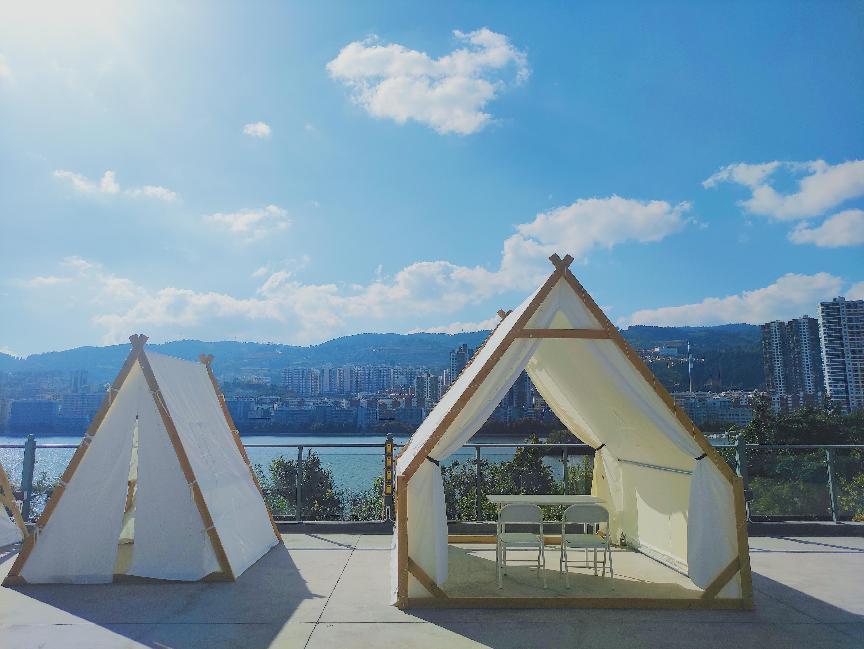 位于服务中心三楼,在帐篷内可俯瞰金湖湖景,以金湖为背景进行直播可为直播人员提供独特的直播环境。