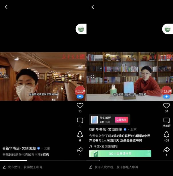 @新华书店则带着观众逛起了城市书房,一同开箱并翻看心理学书籍,像老朋友一般分享起自己的梦,在轻松愉快的氛围下聊起《梦的解析》;还引据“天才在左,疯子在右”,解释过去与当代的神经症人格,鼓励大家正确看待自己的真实一面。