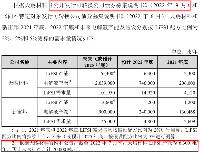 但是依据天赐材料2022年9月公示的《公开发行可转换公司债券募集说明书》,天赐材料计划的产能达120,000吨,是康鹏科技统计的扩产产能的近2倍。那么,康鹏科技依据天赐材料未来扩产产能70,000吨来测算其产能缺口俨然是不合理的。