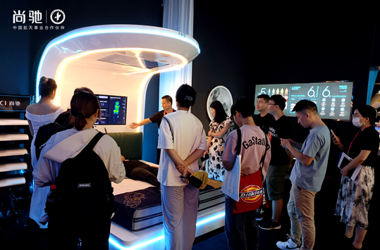 尚驰首次“闪现”建博会,「定制睡眠系统」便引来蜂窝式围观,高端睡眠新品:航天天宫系列、神舟系列、天宫一号等惊艳亮相,现场客户纷纷体验未来睡眠科技,共同探讨市场新空间,将体验馆热闹沸腾的现场气氛进一步推向高潮。