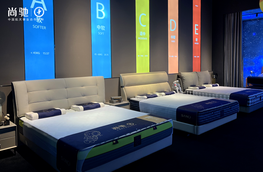 尚驰定制床垫,可根据人体不同睡眠需求进行ABCDE五种软硬精定制,科技壁垒增量整装交付。