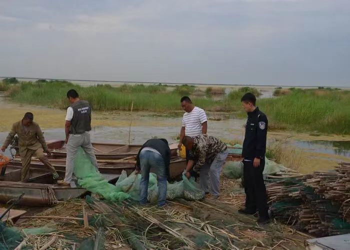 位于乌拉特前旗境内的乌梁素海是黄河流域最大的淡水湖,对保护黄河水质和度汛安全、促进地区经济发展具有重要作用。近年来,乌拉特前旗公安局在原有额尔登布拉格派出所警力的基础上,又在乌梁素海设置专门警务室,配备民警10余人,水上巡逻艇2艘,与乌梁素海渔场工作人员联合组成巡海大队,昼夜开展巡海、护海、打击非法捕捞。2019年至今,共查处多起各类破坏野生动植物资源案,清理非法采挖肉苁蓉人员120余人,收缴野生骨顶鸡卵607枚、疣鼻天鹅卵58枚、野生鸭科类卵1066枚,疣鼻天鹅雏鸟39只,苍鹭雏鸟3只。通过打防结合方式,用实际行动守护绿水青山。