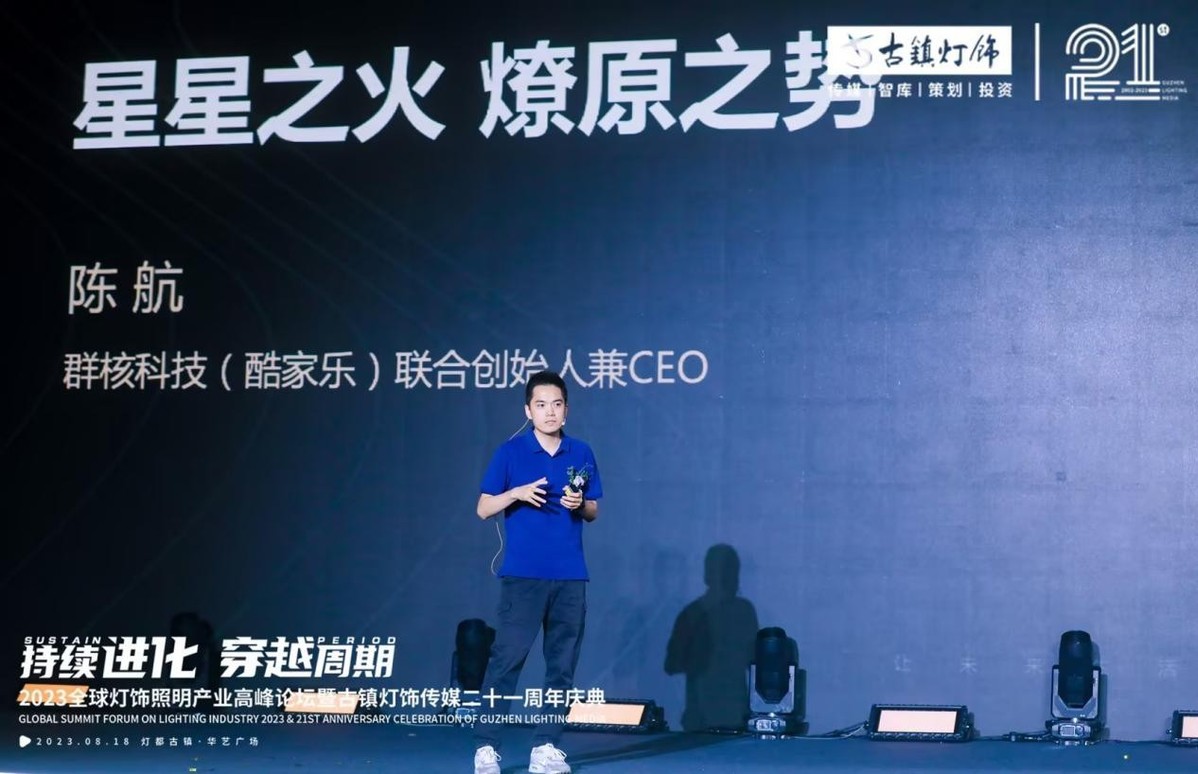 “酷家乐有信心在专业赋能服务体系的建立和投入下,助推中山市古镇镇转型成为‘立足广东、辐射华南、示范全国’的灯饰照明产业智能化高地 。”群核科技(酷家乐)联合创始人兼CEO陈航在2023全球灯饰照明产业高峰论坛上说。