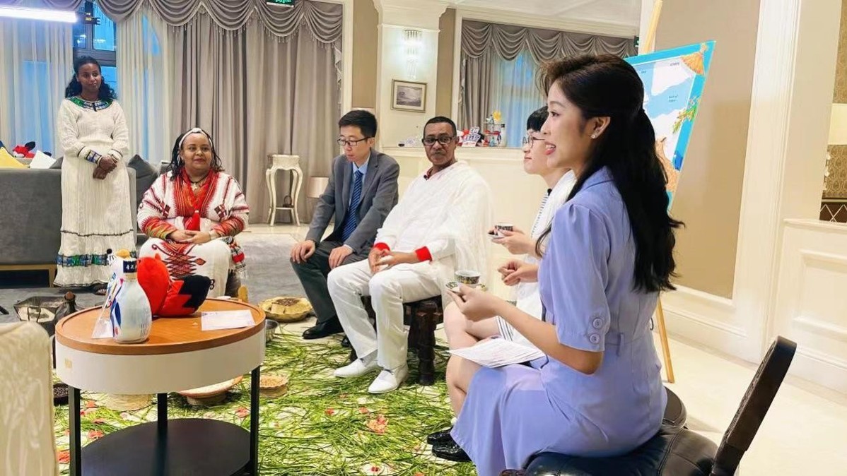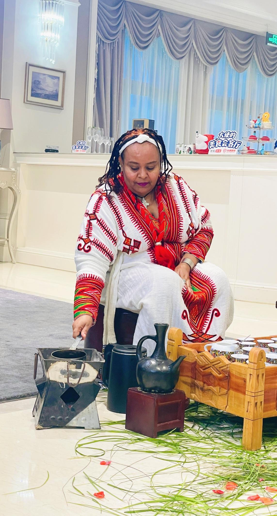 埃塞俄比亚驻华大使夫人现场煮泡咖啡