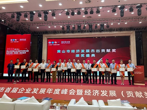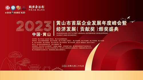 黄山市首届企业发展年度峰会暨经济发展贡献奖颁奖盛典在屯溪隆重举行。一级巡视员陆群,副市长王恒来,市政协副主席胡黎明,安徽省企业家联合会会长邬国庆等出席。本次活动由黄山市企业(企业家)联合会、黄山市发展促进会主办,浙江浙企云科技有限公司、黄山交通旅游广播承办。