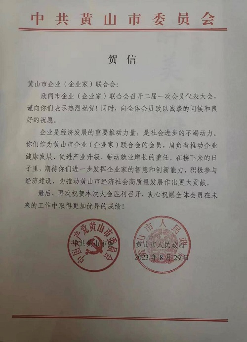 活动最后,黄山市人民政府副市长王恒来讲话。他说,近年来,黄山市聚焦新兴产业发展,深化“双招双引”工作,全市经济社会发展呈现出蓬勃发展的势头。希望各商协会、企业家们进一步坚定发展信心,建立完善现代企业制度,健全提升运营管理机制,加大企业研发创新,推动企业转型升级,为黄山经济高质量发展作出更大贡献。此次会议,将成为推动黄山市企业发展的重要里程碑,必将进一步促进企业与政府的有效合作,推动黄山市经济的发展与创新。