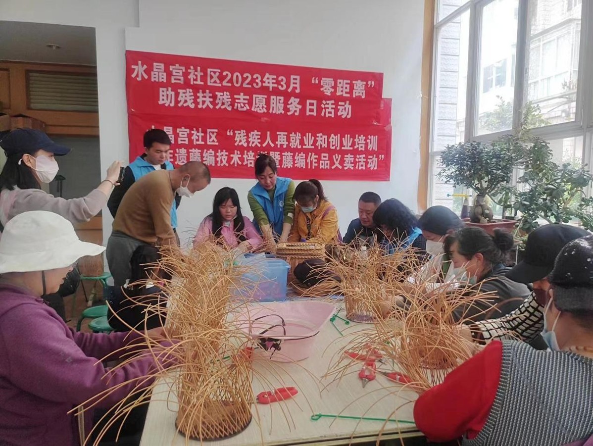 同时,项目以创新、落地的方式开展了切实有效、口碑良好的多元化的创新性残疾人助残活动和服务。从2022年9月开始,每月28日以现场活动+服务的方式,邀请爱心企业及有能力和专业技术的志愿者达人一起,开展残疾人微电商再就业培训、面点制作技术实操培训、非遗藤编技术培训暨藤编作品义卖、“残疾人、老年人心理健康调试讲座”“残疾人安全健康教育科普”等活动共计15场。该项目用心理团辅技术将文化、精神、技能培训、健康等多方面助残服务融合,给予社区及残疾人有实效的帮助,在目前大部分社区活动组织难、入户难的现实情况下有效解决了面对面服务的问题。活动获得社区及居民的交口称赞和一致好评。