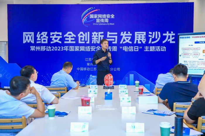 日前,杭州研发中心受邀参加由江苏省通信管理局及中国移动江苏公司常州分公司举办的“常州移动2023年国家网络安全宣传周“电信日”主题活动,并做《基于运营商网络的安全应用与服务实践》主题分享,向三十余家中小企业分享中国移动解决方案。