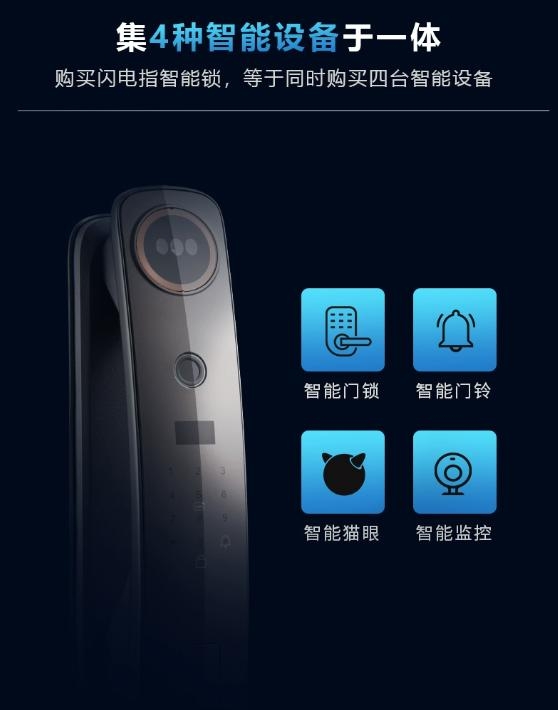以国产智能锁品牌闪电指为例,其旗下产品集成了智能门锁、智能门铃、智 能猫眼、智能监控等多种智能设备为一体。不锈钢防噪锁体、C级防盗锁芯防锯、防撞、防撬,新一代“3D 结构光+双目仿生”技术防止假脸、照片、视频等冒充 识别,FPC 半导体指纹头防止假指纹破解,还有 24 小时实时监控、异常逗留抓拍等“黑科技”,提供家庭的坚固守护。此外,10余种开锁方式不仅能免除丢 钥匙的苦恼,还能避免老人外出小孩反锁家门带来的安全隐患,也能随时随地授 权清洁工人等临时进入家门;主动视频对讲功能,无须物理按键唤醒,随时都可 与家人或宠物实时互动......一把智能锁,将居家安全需求与便捷需求的解决方案融为一体。