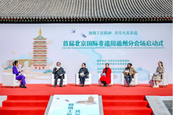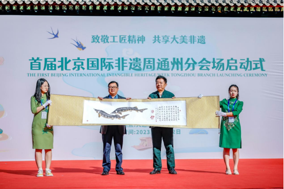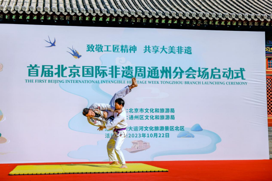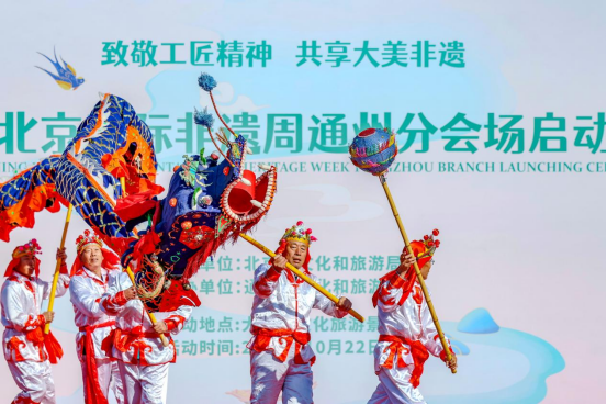 10月22日,由北京市文化和旅游局指导、通州区文化和旅游局主办的“首届北京国际非遗周通州分会场活动”在通州区大运河文化旅游景区北区正式启动。本次活动以“致敬工匠精神 共享大美非遗”为主题,涵盖主题展演、非遗展览、非遗集市、非遗体验等丰富多彩的项目,汇聚几十个通州代表性非遗,还邀请了昆曲、龙泉青瓷等人类非遗项目及部分非遗项目,为游客和广大市民奉上了精心准备的“文化大餐”,让公众有机会深入了解和感受丰富的非物质文化遗产,对推动非遗的传承和发展具有重要意义。