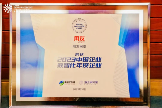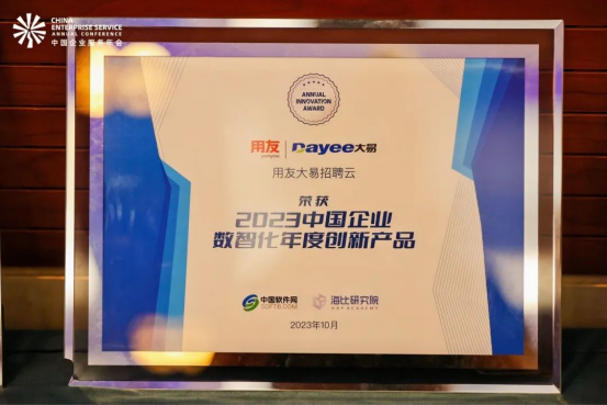 近日,由中国软件网、海比研究院主办的“洞见2024第7届中国企业服务年会”在北京顺利举行。会上,海比研究院发布了《2024中国企业数智服务市场趋势洞察研究报告》,并对年度表现优秀企业、创新产品进行表彰。用友网络获得“2023中国企业数智化年度企业”称号,用友大易凭借优秀的智能招聘解决方案、专业的服务,从众多参评科技产品中脱颖而出,荣获“2023中国企业数智化年度创新产品”奖项。