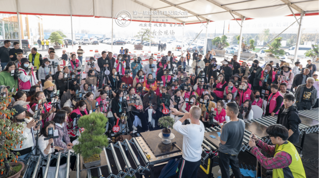 拍卖活动于下午13点准时开场。现场人潮涌涌不失有序,主播们充分调动人气,有条不紊地从每一件作品规格、冠幅、高度、粗度品评开始,多方位展示拍品品相、年工,随即宣布0元起拍,由买家随意起价,继而竞相拍价,现场加价声此起彼伏,竞争极其激烈。“3、2、1”倒计时声中,高潮连连,氛围火爆!