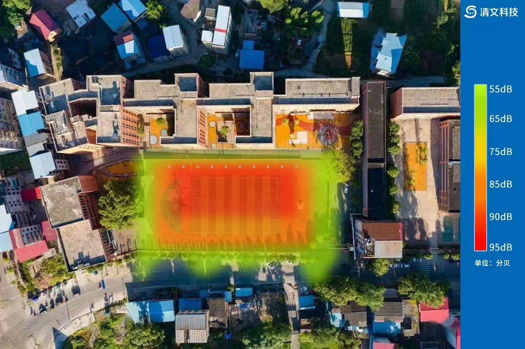 扰民问题:基于声音指向性传播原理, 声音随角度的增加呈现衰减状态,能够让声音集中在特定区域传播,降低对操场周围的影响。
