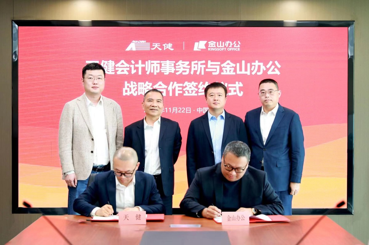11月22日,金山办公与天健会计师事务所联合宣布达成战略合作,双方将进一步深化合作,在数字办公产品创新、行业解决方案等方面展开深度合作,推动注册会计师产业链办公数字化转型。天健会计师事务所执行总裁王国海、金山办公副总裁吴庆云出席签约仪式。