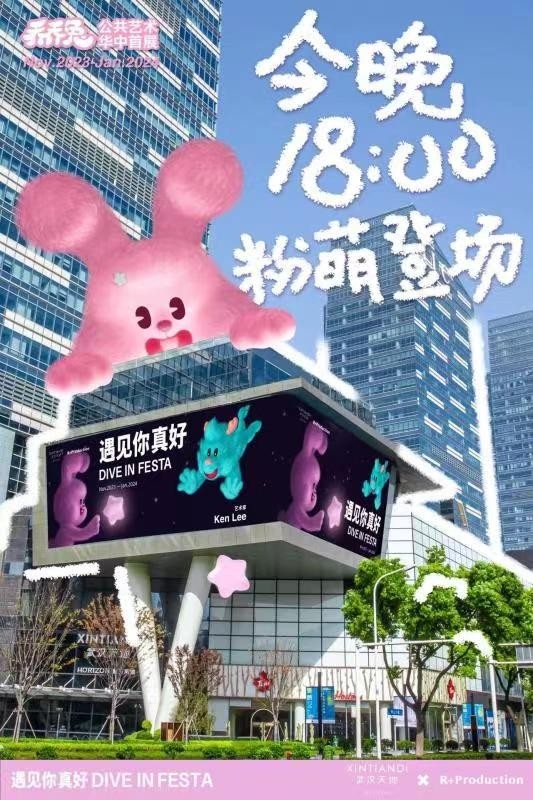 11月24日,首展启幕仪式于壹方南馆户外广场举行,武汉市商务局消费处二级调研员易杰、武汉市江岸区商务局党委书记局长/祝丽芳、武汉市江岸区商务局副局长蒯强、瑞安新天地项目总经理谢荣鑫、R+ production 副总裁陈虎先生、艺术家Ken Lee出席现场。