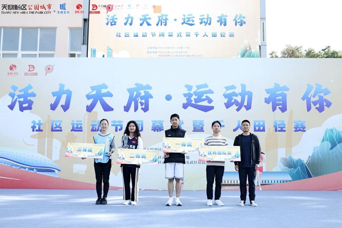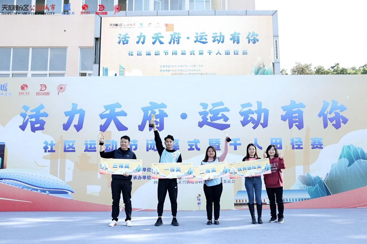2023年11月26日,由中共成都市委城乡社区发展治理委员会指导,四川天府新区党工委党群工作部主办,四川天府新区正兴街道办事处,四川天府新区正兴街道苏码头社区居民委员会承办的“活力天府·运动有你”社区运动节闭幕式暨千人田径赛顺利召开。