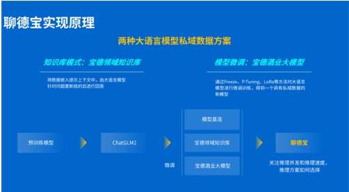 宝德AIGC解决方案是软硬一体化解决方案,既可以集群部署也可以单机部署,方案架构包含硬件层、平台层、服务层和应用层。在硬件层,宝德充分发挥了20年服务器行业技术积累,提供涵盖AI训练服务器、AI推理服务器和AI边缘产品等多平台选择和可兼容,进行模型的高速训练、微调和高效推理。在硬件基础上,方案采用K8S进行集群资源管理(单机部署采用Docker)。基于雄厚的硬件层和平台层,在服务层部署了ChatGLM大模型推理服务、由GLM微调而来的行业大模型-宝德酒业大模型推理服务、宝德自研的嵌入数据仓库服务,可以将行业数据转换成向量数据,存储到向量数据库中,通过相似度匹配算法查询出相关内容交给大语言模型进行推理、LLM Functions服务,主要让大语言模型拥有调用后端接口的能力。基于这些硬件和服务,宝德开发了诸如聊德宝、AI客服和数字人等多种AI应用,可广泛服务于行业大模型、智能语音助手、网络直播、线上教育和培训等领域。