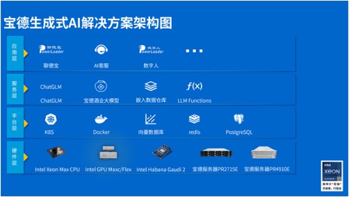 宝德在基于此CPU和Intel Flex GPU的自研服务器PR2715E上开发部署了LLM 方案-聊德宝,它拥有调用私域数据的能力,让AI应用更加智能化、个性化地为用户提供服务,目前已经应用于宝德服务器AI客服、金沙古酒AI客服、金沙古酒直播数字人等产品。聊德宝具有快速迁移、便捷部署、多路并发的显著优势;最重要的是,该方案价格同比其它常规方案最高节约超过50%!