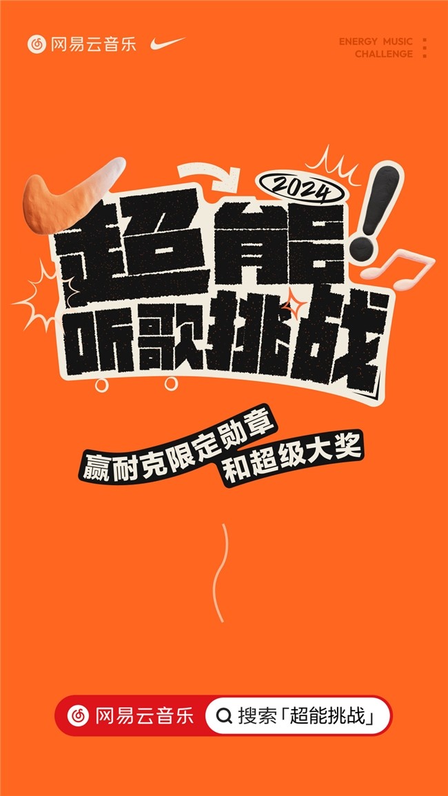 除了勋章系统,双方还共同发起了“超能听歌挑战赛”。参与活动每日打卡签到的用户即可参与抽奖,有机会赢取耐克周边产品。而通过累计听歌时长,用户还可以进入巅峰排名,争夺耐克礼品卡、运动套装等限量大奖。这一挑战赛不仅激发了用户的参与热情,也让音乐与运动的结合更加紧密。